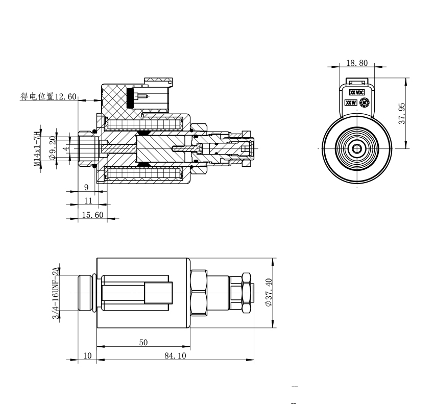 - 适用于 SD3E-B2 系列常闭型电液螺纹插装阀